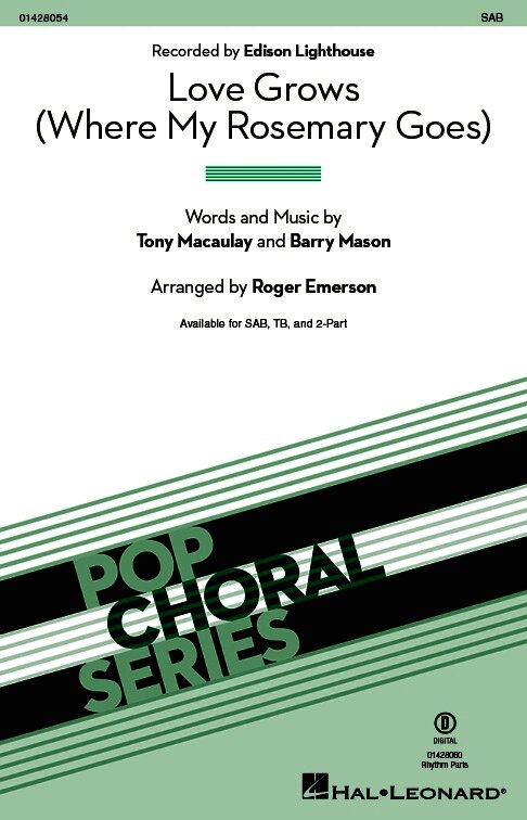Capturing the sugar-sweet, feel-good magic of the 1970 no. 1 UK hit by Edison Lighthouse, Roger Emerson's delightful arrangement of “Love Grows (Where My Rosemary Goes)” will brighten any choral program with its retro appeal. From the first few notes of an instantly-recognizable opening riff, your audience won't be able to stop themselves from moving to the music.