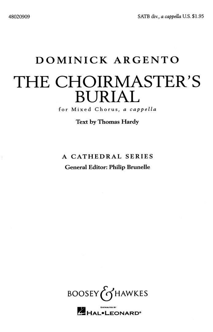 The Choirmaster's Burial: SATB div., a cappella A Cathedral Series New